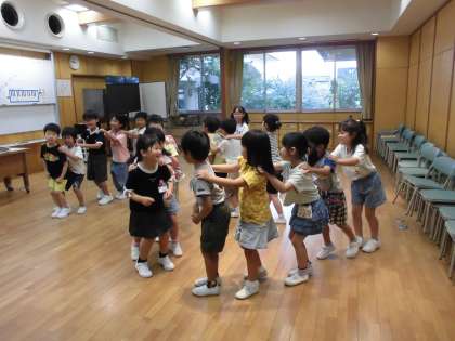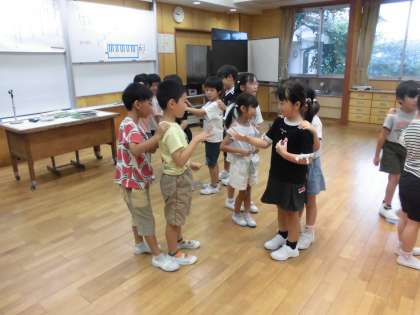 授業の終わりに「白くまのジェンカ」をしました。リズムに合わせて楽しんでいました。