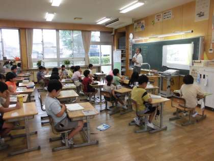 植物に実がなる様子を学習しています。先生から、植物の豆知識のお話もあり、楽しい授業でした。