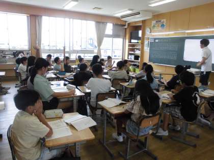 倍数と公倍数の学習です。大事なことをノートに書きながら、真剣に考えていました。