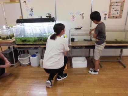 毎日、生き物のお世話を続けています。いそしら水族館の生き物たちは、今日も元気です。