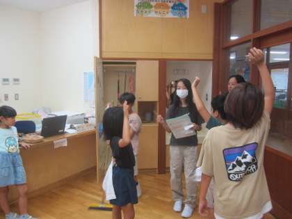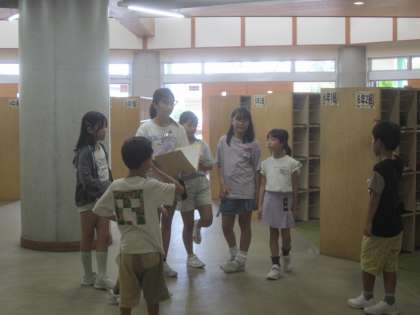 今日から2学期の縦割り班清掃が始まりました。初日の今日は、担当を確認し、さっそく掃除に取り組んでいました。