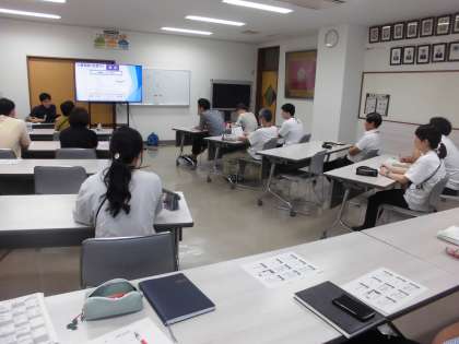 1学期に中央研修を受けた先生からの伝達講習です。人権教育についての話を聴き、人権の大切さについて考えました。日頃の教育活動で実践していきます。