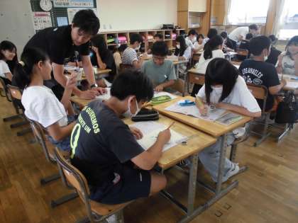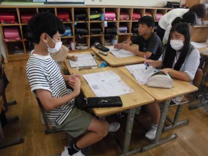図形の学習です。友達や先生に質問しながら集中して取り組みました。