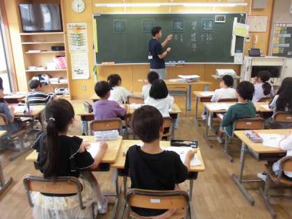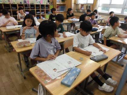 「友」の書き順を確認しました。正しい書き順で、丁寧に書けるようにがんばっています。