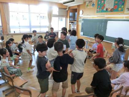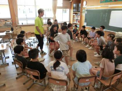 4年生は、教室でフルーツバスケットをして楽しんでいました。