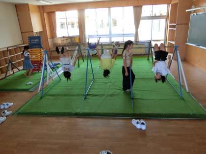 鉄棒を楽しんでいる子供たちもいます。