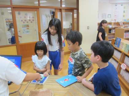 体力つくり活動の後の休み時間に、図書室で静かに読書を楽しんでいる子供たちの姿がありました。