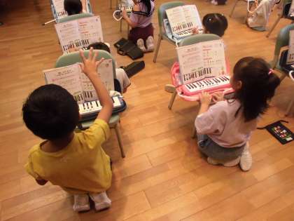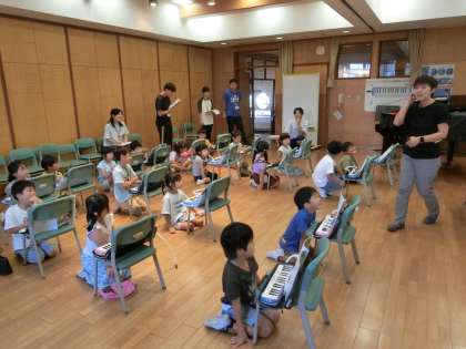 1年生の音楽の授業です。先輩教員の技や工夫を教員同士で共有しました。