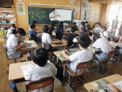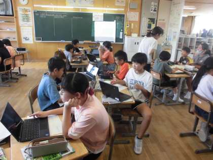 1組は理科「台風と天気の変化」、2組は社会「水産業がさかんな地域」の学習です。