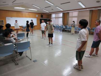 場面ごとに演出を話し合いながら練習を進めています。場面に合わせた動きや、役になりきった演技を考えています。