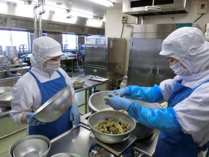 梅肉和えは、キャベツと小松菜を梅肉、しょうゆ、ゆかり粉であえました。暑い日ですがさっぱりと食べることができました。