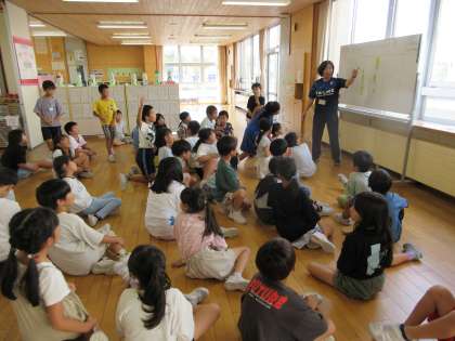 学年で、先生から学習発表会の話を聞きました。どの役にするか、子供たちはじっくり考えていました。