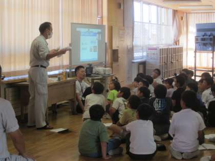 市役所の方をお招きして3Rスクールを行いました。大広田校区にごみ集積所が84カ所あると聞いて、びっくりしていた子供たちです。