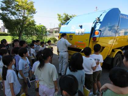 ゴミ収集車の仕組みや工夫についても学びました。