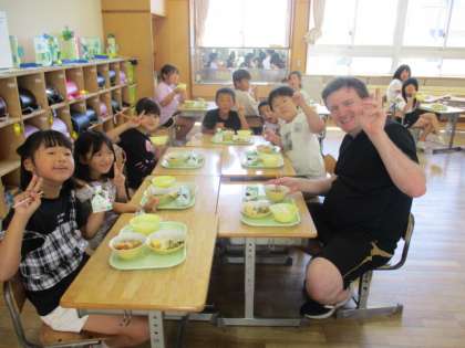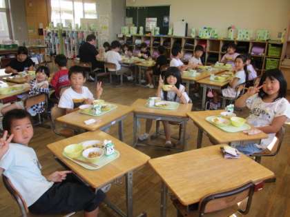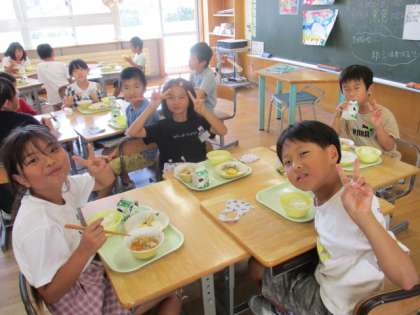 今日は英語の先生が2−1に来られ、一緒に給食を食べました。いつもよりなんだか明るい雰囲気に、とても嬉しそうな子供たちです。