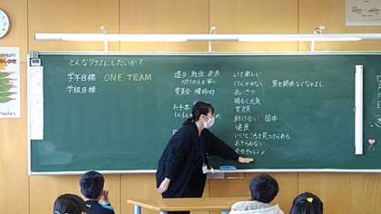 どんな学級にしたいのかを話し合い、学級の目当てを考えています。
