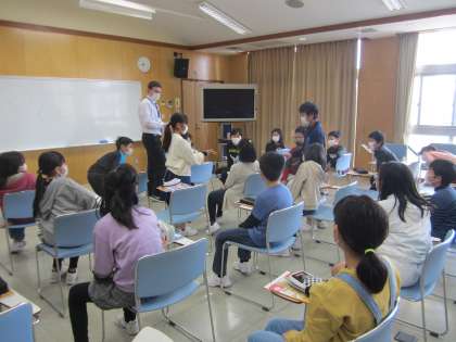 ALTのマーク先生と5年生になって外国語の学習をしました。マーク先生の自己紹介ゲームやアメリカのクイズなど楽しく活動しました。