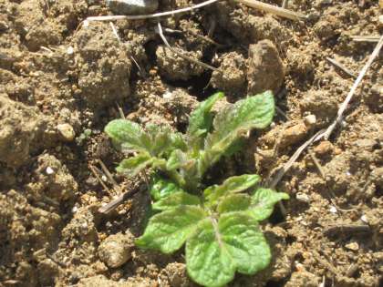 本当は6年生のみなさんと一緒に植えたかったのですが、臨時休業のため、先生達で4月24日にたねいもを植えました。そのジャガイモの芽が出てきましたよ。