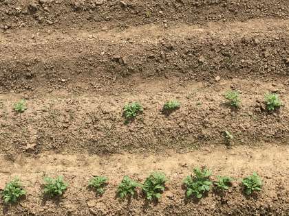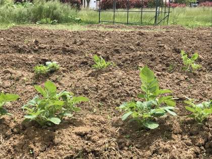 次々とジャガイモの芽が出て、葉がふさふさになってきました。6年生教室の横の窓からもよく見えますよ。