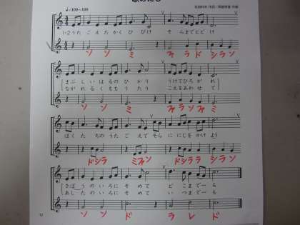 「歌のにじ」の階名です。自分がかいた階名が正しいかかくにんしておきましょう。