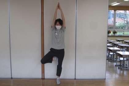 さあ、今日の運動ゲームは調子を整えることをテーマに「木のポーズ」をやりましょう。