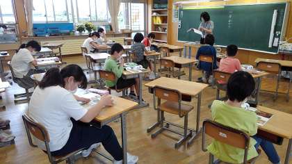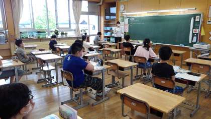 6年生の社会科と理科の授業の様子です。担任が入れ替わっています。今年度の取組みとして、学年担任制を行います。学年間での交換授業や専科教員による授業等を行い、多くの教職員で子供に関われるようにします。