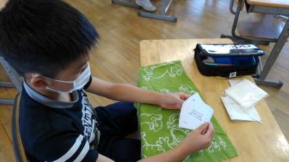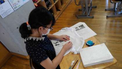 マイマスク作りに挑戦しています。お気に入りの柄がマスクのどの部分にもってこればよいか工夫しています。