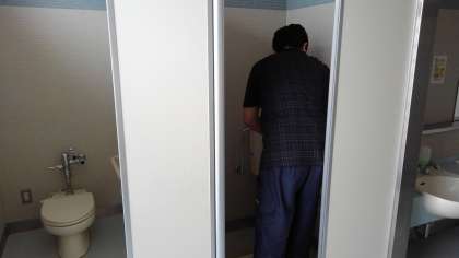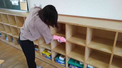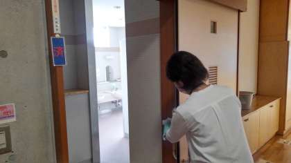 子供たちが帰った後、教職員でトイレ掃除や教室の机、ロッカー等の消毒を行っています。