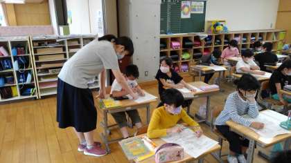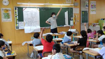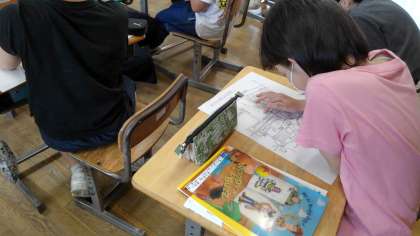 3年生になって、社会科の学習が始まりました。まずは、身近な町の様子を調べたり、それを地図に表したりします。
