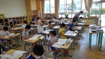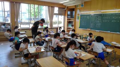 算数科では、少人数指導を行っています。2クラスを3クラスに分け、少人数できめの細かい指導に努めていきます。