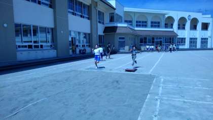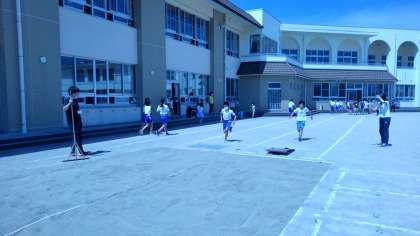 新しく登場した、練習場。たくさんの子供たちが楽しみながら走り幅跳びに挑戦しました。