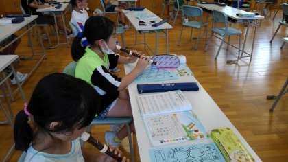 リコーダーが上手になってきました。みんなと音を合わせています。