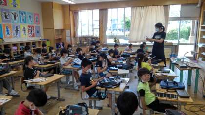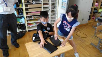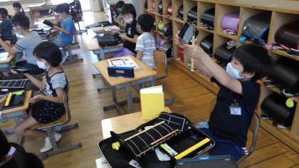 初めての書写の学習をしました。道具の名前や使い方を学びました。早く書きたい様子でした。