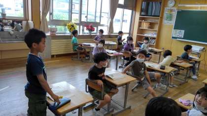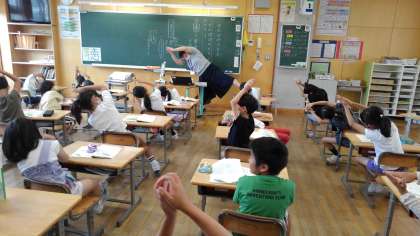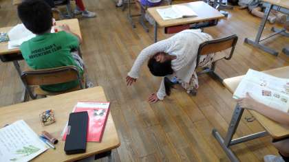 「たんぽぽのちえ」の学習では、黒ずんでぐったりする様子を言葉で説明したり、体で表現したりしています。