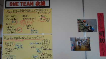 自分たちで朝の過ごし方を考えて活動しています。どんな自分でありたいか、どんな学校や学級にしたいか、目当てをもって活動しています。