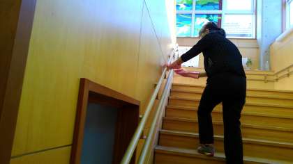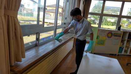 放課後、階段や教室等の換気と消毒を入念に行いました。