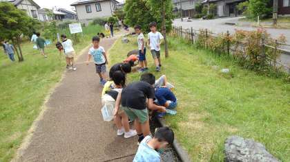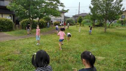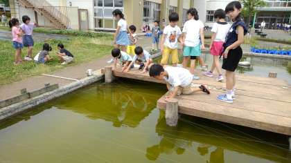 ビオトープで生き物を探したり、鬼ごっこを楽しんだりしています。