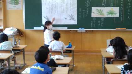 「たんぽぽのちえ」の学習では、一つ一つの言葉にこだわって読み深めています。