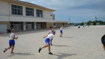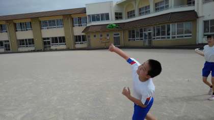 ソフトボール投げでは、肘の使い方や足の重心のかけ方に気を付けて練習しました。