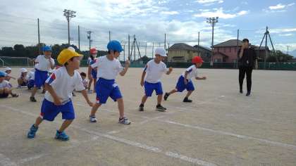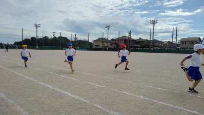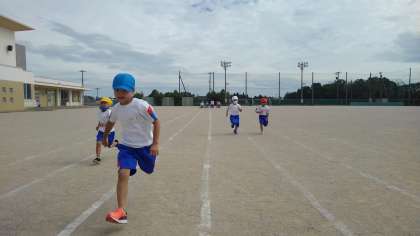 50m走に挑戦しました。友達と競争して、とても楽しそうです。