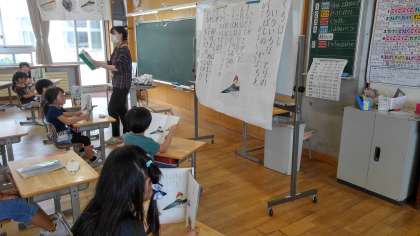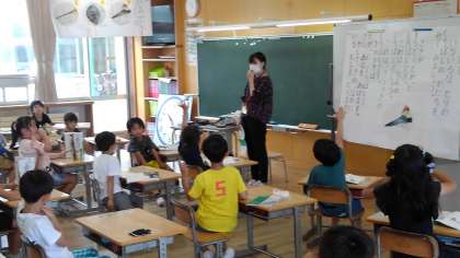 初めて学習する説明文「くちばし」では、問いと答えの文に気を付けて読んでいます。