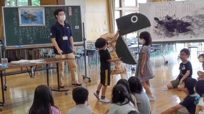 「スイミー」の学習では、大きなマグロが現れました。子供たちは、赤い魚やスイミーになりきって、マグロに友達を食べられた時のスイミーの気持ちを考えました。