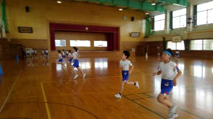シャトルランに挑戦しました。昨年よりも記録が伸びるよう必死に走っています。