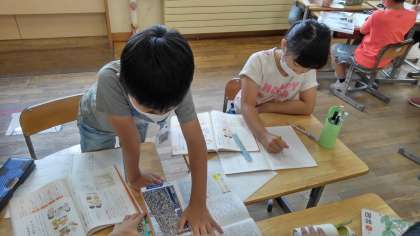 図書室の本などで確かめたり、友達の知らないことを予想したりして、書きました。