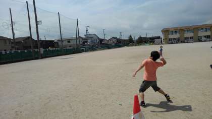 ボール投げ練習コーナーでは、6年生が技7の金レベルに挑戦しています。
