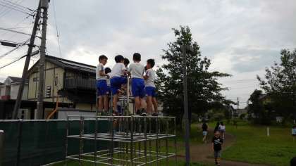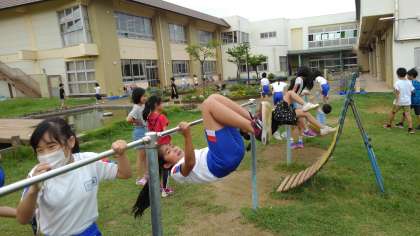 鉄棒や遊具でわざ7に挑戦する姿も見られます。