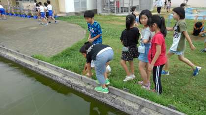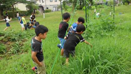 ビオトープで虫を真剣に探す姿も見られます。