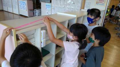 黒板やロッカー等、長いものも比べました。