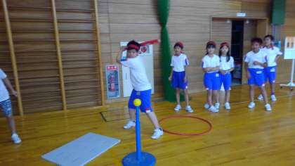 ティーボールに取り組んでいます。力強く振ることができるようになりました。