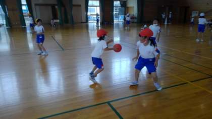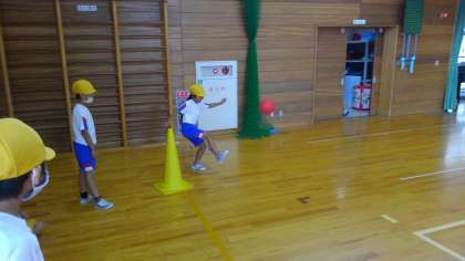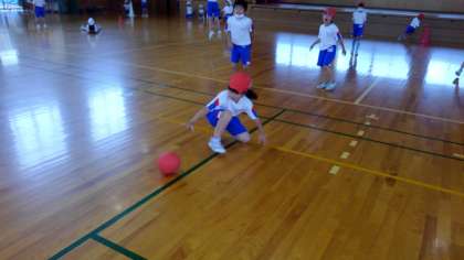 キックベースボールに取り組んでいます。ノーバウンドでキャッチして、アウトも取れるようになってきました。